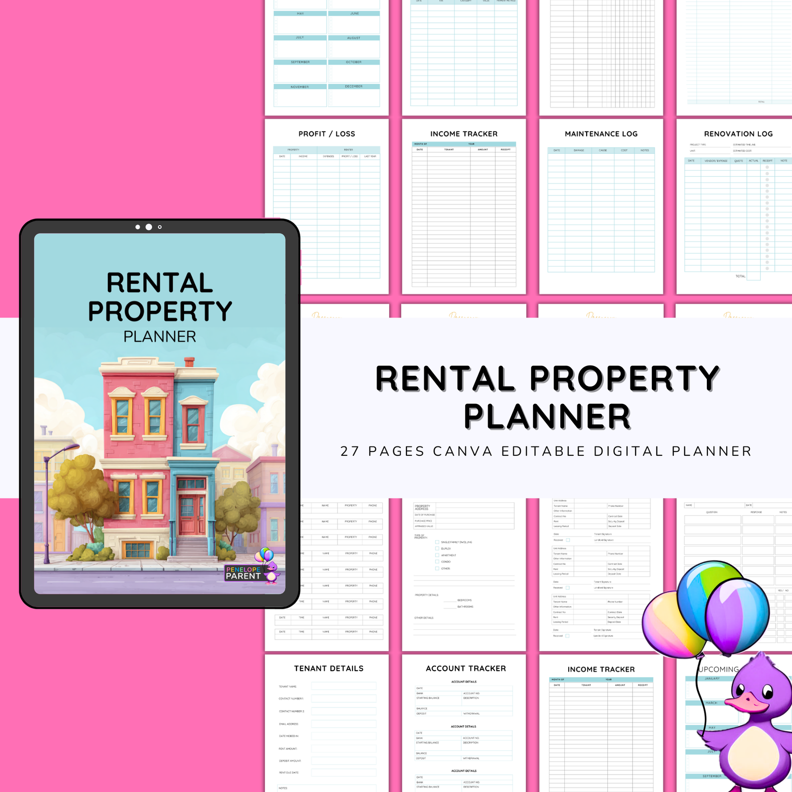 Manage properties like a pro with the Rental Property Planner. Organize tenant details, rental income, and maintenance tasks in one easy printable.